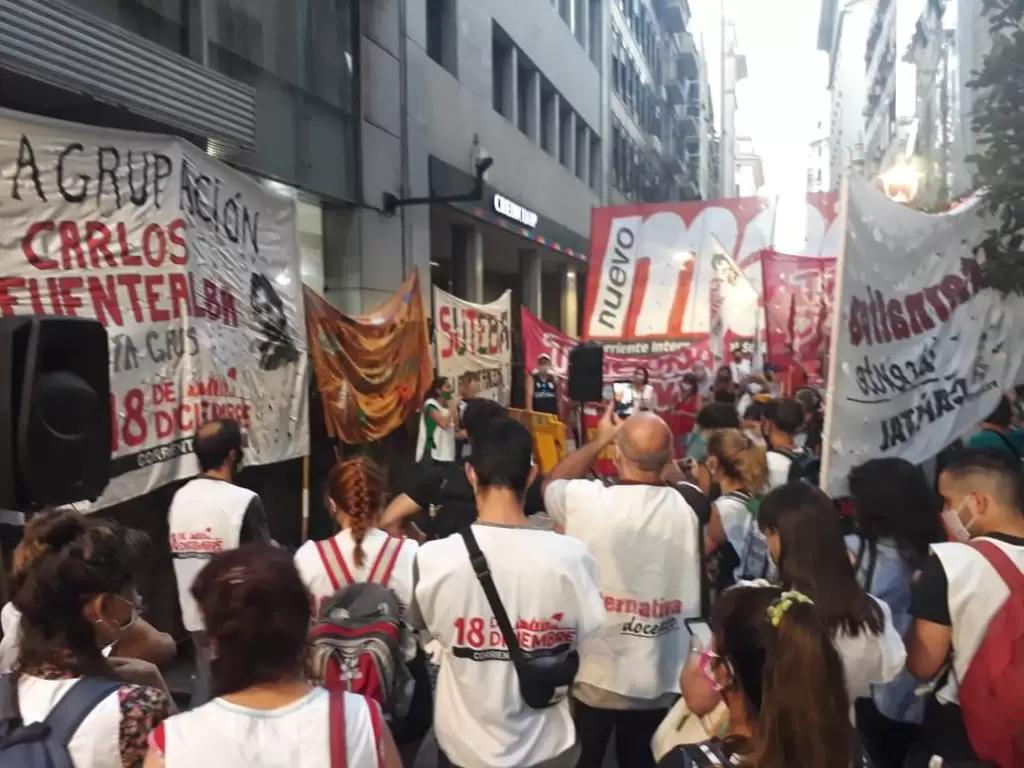 La jornada fue organizada por la Asociación de Enseñanza Media y Superior de Buenos Aires (Ademys), el Sindicato Unificado de Trabajadores de la Educación de Buenos Aires (Suteba), entre otros.