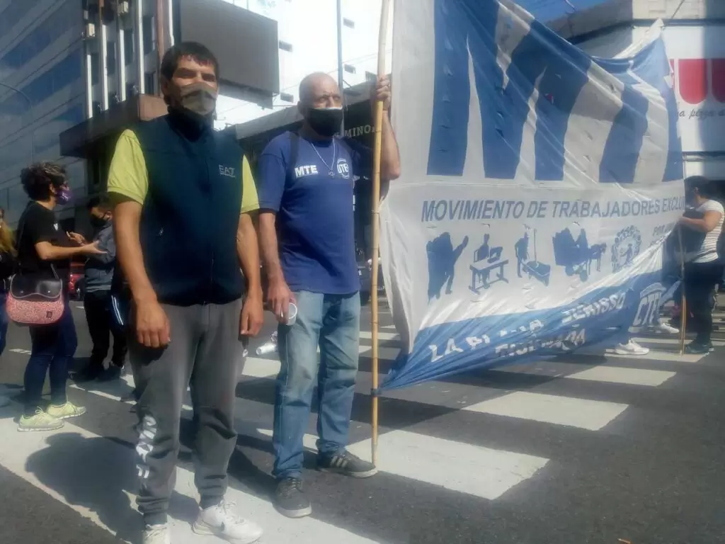 El reclamo fue efectuado dentro del Movimiento de Trabajadores Excluidos (MTE) del cual forman parte y además participó el Frente Dario Santillan, el Movimiento Nuestra América y un grupo adherente de trabajadores autónomos.