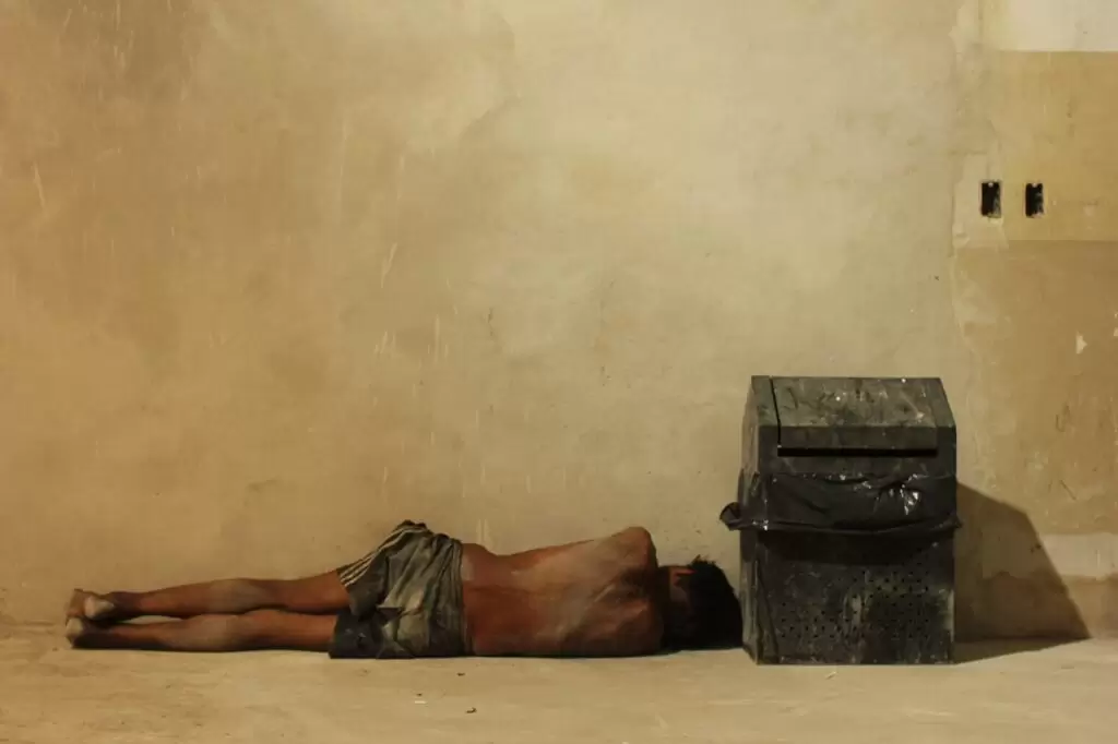 La fotografía es de una persona en aparente estado de situación de calle que se encontraba dentro de la terminal. Acostado en el piso sobre una pared al lado de un pote de basura. Ahí reflexiono sobre el hombre como humanidad, como destrucción. A su vez en estado crítico que genera de por sí miseria en la sociedad y en el mundo. Quizás este mundo sea demasiado bello para merecer el hombre.