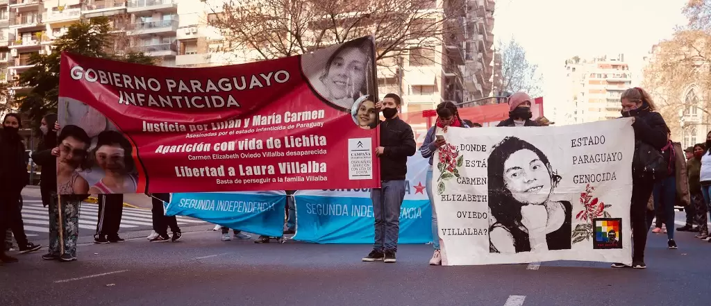 Este viernes 2 de julio, la Campaña #EranNiñas convocó a las 14:00 horas a una manifestación en frente de la Embajada de Paraguay, en la Ciudad Autónoma de Buenos Aires. El motivo fue el cumplimento de 10 meses del crimen de las niñas María Carmen Villalba y Lilian Mariana Villalba; siete meses de la desaparición de Carmen Elizabeth Oviedo Villalba, alias “Lichita”; y seis meses de la detención de Laura Villalba.