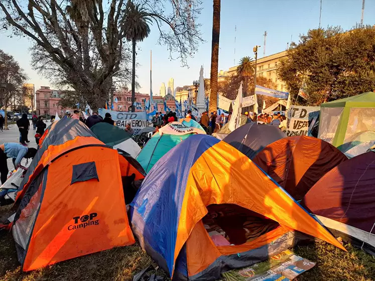 Agrupaciones como la Túpac Amaru, Movimiento Evita, Movimiento Popular La Dignidad, Patria Justa, APDH (Asamblea Permanente por los Derechos Humanos) tienen su carpa instalada en la plaza.
