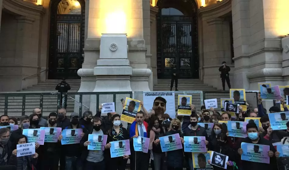 En la tarde de este jueves, amigues y familiares de Arshak Karhanyan, policía desaparecido hace más de dos años, se concentraron frente al Palacio de la Justicia, en Tribunales. Su objetivo es que el caso se investigue como una desaparición forzada y que pase al fuero federal.