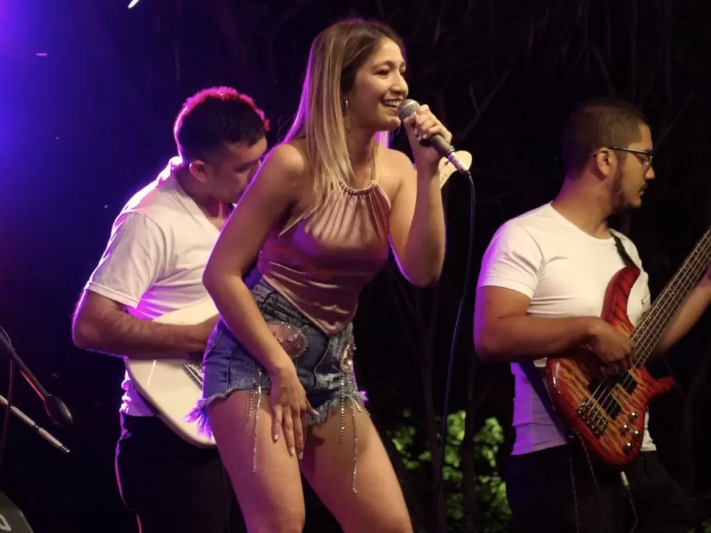 Con temas musicales consagrados por grandes, la joven artista recorrió un repertorio con el que el público empatizó desde el comienzo. Entonando grandes himnos de Damas Gratis, Karina, la princesita, y otros reversionados “a lo cumbia, como dice el correntino”, dijo, apelando a sus raíces.