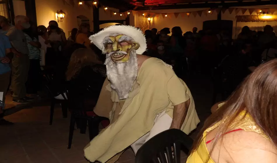 Este número artístico no se limitó al escenario, sino que se desplegó en medio de les espectadores, quienes observaban atentos a los movimientos de les bailarines. “Yo represento al Karahí, a este personaje que al llegar octubre se pasa observando que todos estén comiendo”, dijo el coreógrafo Feche García.