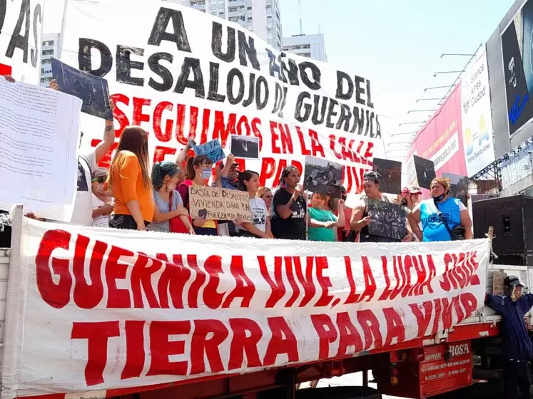 Después del fatídico hecho, se organizó una Comisión de Mujeres de Guernica, presentes en la marcha en el Puente Pueyrredón. Allí, reclamaron justicia por Ayelén Jara Gutierrez, una joven de 20 años y madre de un niño de 1 año, quien fue víctima de femicidio luego de ser desalojada del predio.