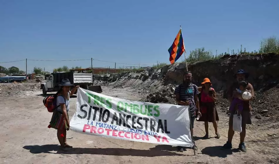 Este martes 2 de noviembre, integrantes de la Comunidad originaria “Tres Ombúes” decidieron realizar un acampe para reclamar la recuperación del territorio ancestral ante el avance de construcciones. El mismo se encuentra en la localidad de Ciudad Evita, en el partido bonaerense de La Matanza.