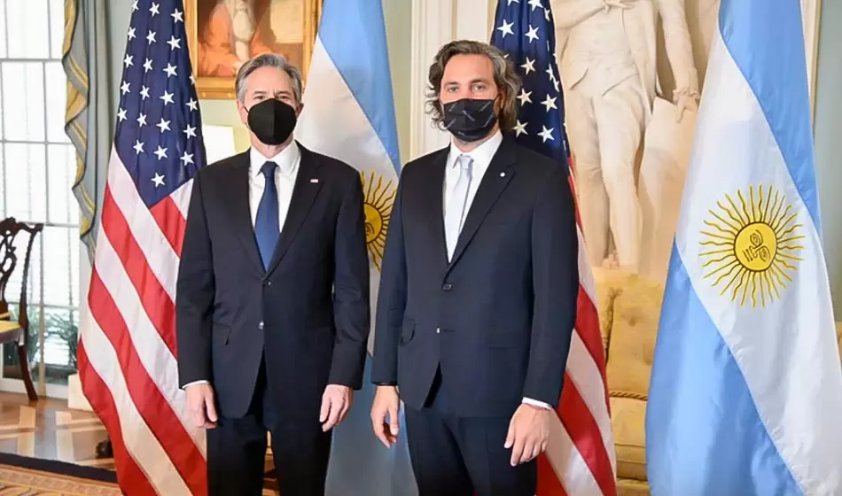 Este martes, en la ciudad de Washington, el canciller Santiago Cafiero dio inicio a su gira oficial por Estados Unidos al reunirse con el secretario del Departamento de Estado norteamericano, Antony Blinken. El encuentro, que duró aproximadamente una hora, se enmarca en la intención del gobierno de conseguir los respaldos internacionales que permitan fortalecer la postura argentina frente al Fondo Monetario Internacional.