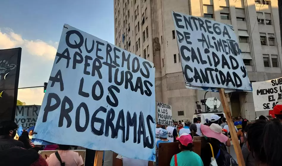 En los últimos meses, diferentes organizaciones sociales realizaron reclamos masivos para que el Ministerio de Desarrollo incluya nueves beneficiaries del Potenciar Trabajo. Porque si bien el gobierno actual es proactivo en cuanto a las ayudas económicas por parte del Estado, tiene el aliento del FMI en la nuca.