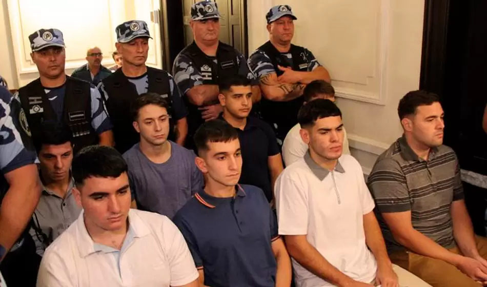 Los presuntos asesinos de Fernando Baéz Sosa: Máximo Thomsen (23), Enzo Comelli (22), Matías Benicelli (23), Blas Cinalli (21), Ayrton Viollaz (23), y Luciano (21), Ciro (22) y Lucas Pertossi (23) están presentes en esta nueva jornada, así como lo hicieron desde el inicio del debate oral. De igual forma, les xadres de la víctima presencian las declaraciones en la sala de audiencias del primer piso de los tribunales.