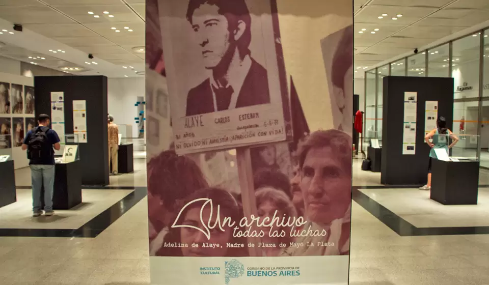 La exposición “Un archivo, todas las luchas” contiene una parte del amplio archivo personal de Adelina Dematti de Alaye. Allí se pueden observar documentos, escritos de la integrante de Madres de Plaza de Mayo Línea Fundadora, revistas, publicaciones, parte de su biblioteca personal e imágenes que ella misma tomaba.