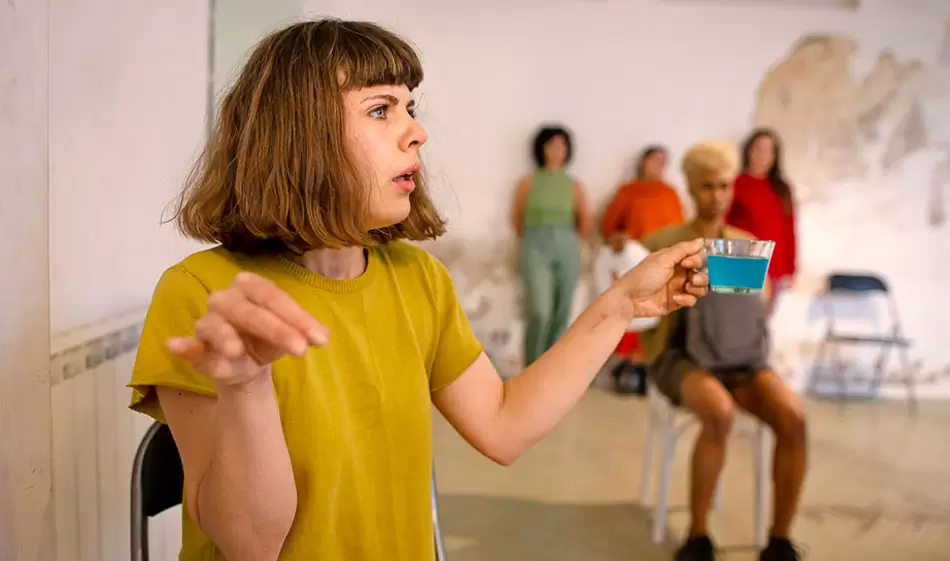En ese sentido, la obra tiene algo incómodo en que el espectador no tiene que sentarse a verla, puede decidir en qué momento sentarse o quedarse parado. Esto siempre en un recorrido, que empieza en un primer piso. Luego hay un traslado hasta al patio. Hay una situación de acompañar la narrativa con el propio cuerpo.