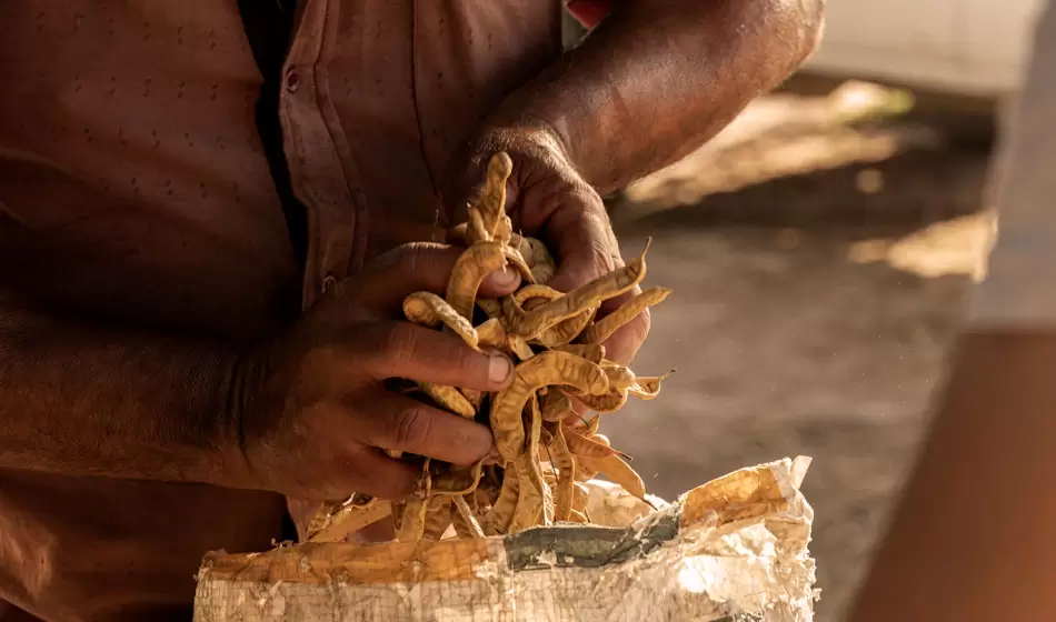 Durante diciembre de cada año, vecines del Parque Nacional “El Impenetrable”, en Chaco, se reúnen para realizar la colecta de chauchas de algarroba (Prosopis alba), fruto con el que elaboran harina para su comercialización.
