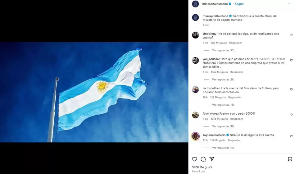 Por su parte, el especialista en seguridad informática Javier Smaldone en diálogo con Tiempo Argentino aseveró: “Manejarán toda la propaganda oficial a través de las redes”. “Por eso quitan la pauta oficial (por un año) y acumularon 250 mil seguidores en Instagram y 3.8 millones de seguidores en Facebook en las cuentas del nuevo Ministerio de Capital Humano”, afirmó.