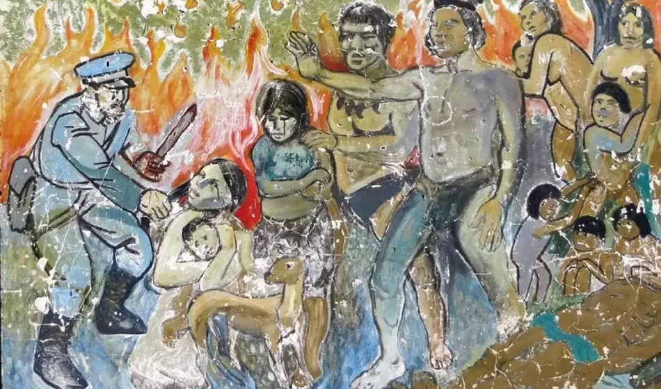 Justo en ese momento inició la represión, los policías disparaban a quemarropa, mientras que otros mutilaban con desenfado. Además muchos indígenas fueron incinerados en fosas comunes y los cuerpos de los líderes fueron exhibidos. Menos de 50 personas pudieron escapar.