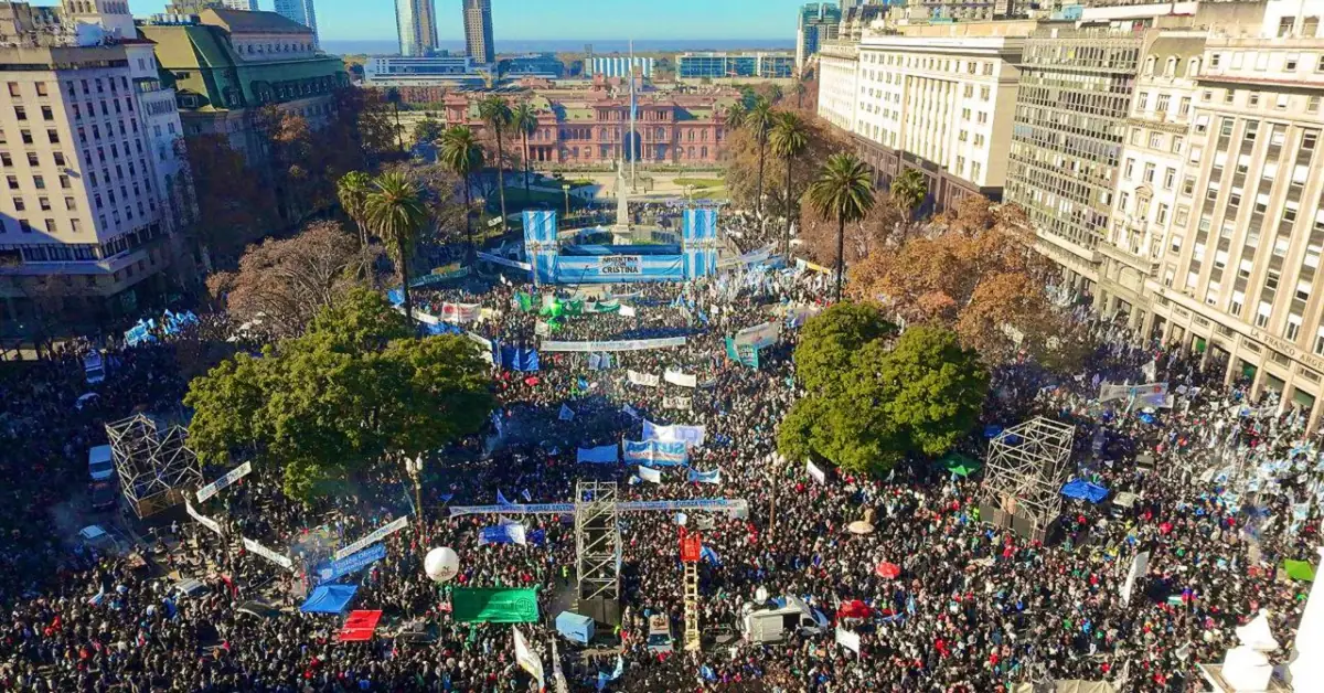 La muestra se dio el miércoles 18 de junio en la Plaza de Mayo de Buenos Aires, en un hecho colectivo que tuvo réplica en prácticamente todas las provincias. No es solo Cristina Fernández de Kirchner, que ese día comenzaba formalmente el cumplimiento efectivo de su condena por la Causa Vialidad.