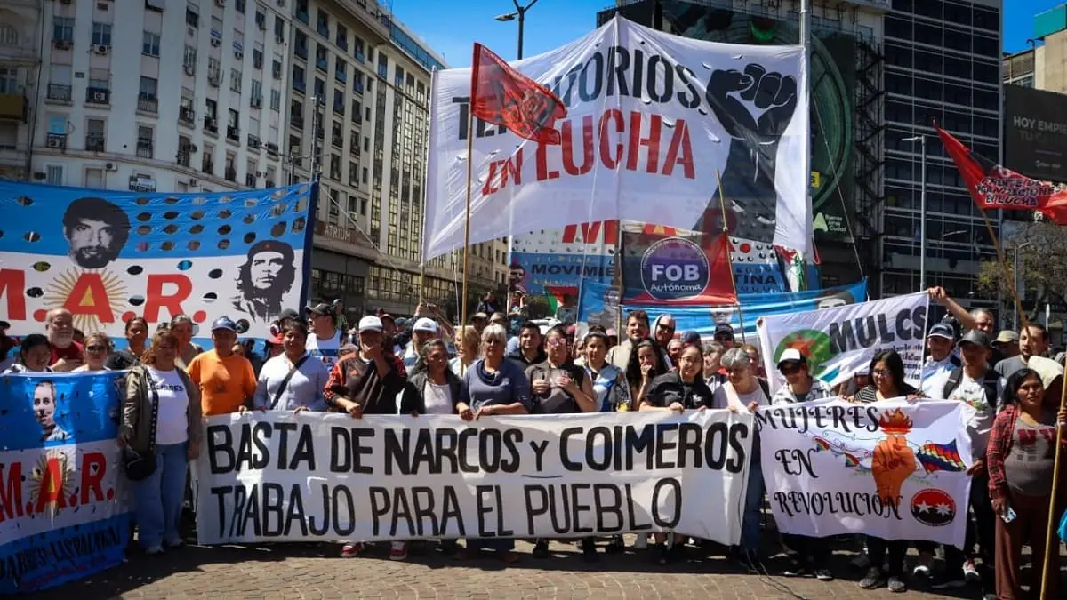La jornada del jueves 9 de octubre estuvo marcada por una fuerte concentración en el Obelisco, donde movimientos sociales, sindicatos y organizaciones populares se movilizaron bajo la consigna “Basta de narcos y coimeros: trabajo para el pueblo”. La protesta expuso el creciente malestar frente a un panorama que los manifestantes calificaron como el resultado directo de la corrupción en las altas esferas del gobierno y el abandono estatal hacia los sectores más vulnerables.