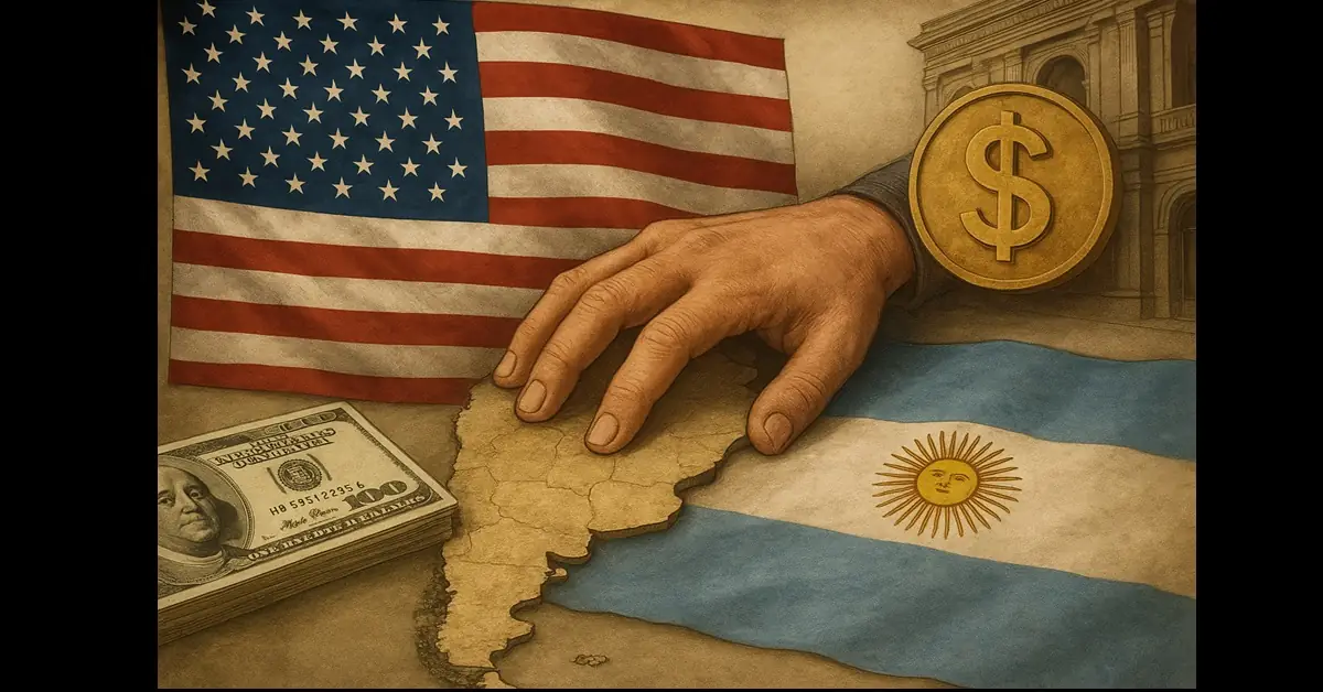 Casi como un juego le pedí al ChatGPT, en su versión gratuita, que elabore una imagen que represente la dominación de Estados Unidos sobre la Argentina, a partir de los anuncios de salvataje. Esa imagen es la que ilustra esta nota, aún a sabiendas de la enorme capacidad del equipo de Nota al Pie para generar piezas gráficas de alto valor creativo, artístico y editorial.