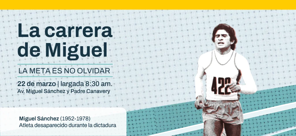 La “Carrera de Miguel” es correr con la historia y regresa la competencia en homenaje a Miguel Sánchez, atleta desaparecido en la dictadura cívico militar argentina, el 8 de enero de 1978. Se realizará el domingo 22 de marzo, los participantes se pueden anotar gratuitamente en las opciones de 8 km competitivos o 3 km participativos.